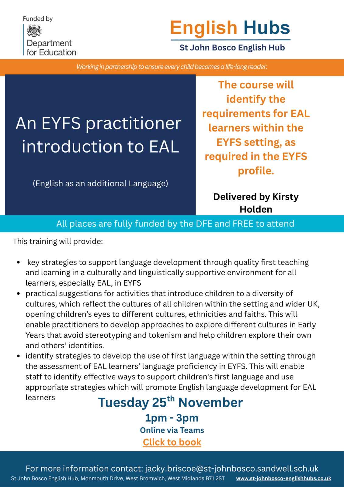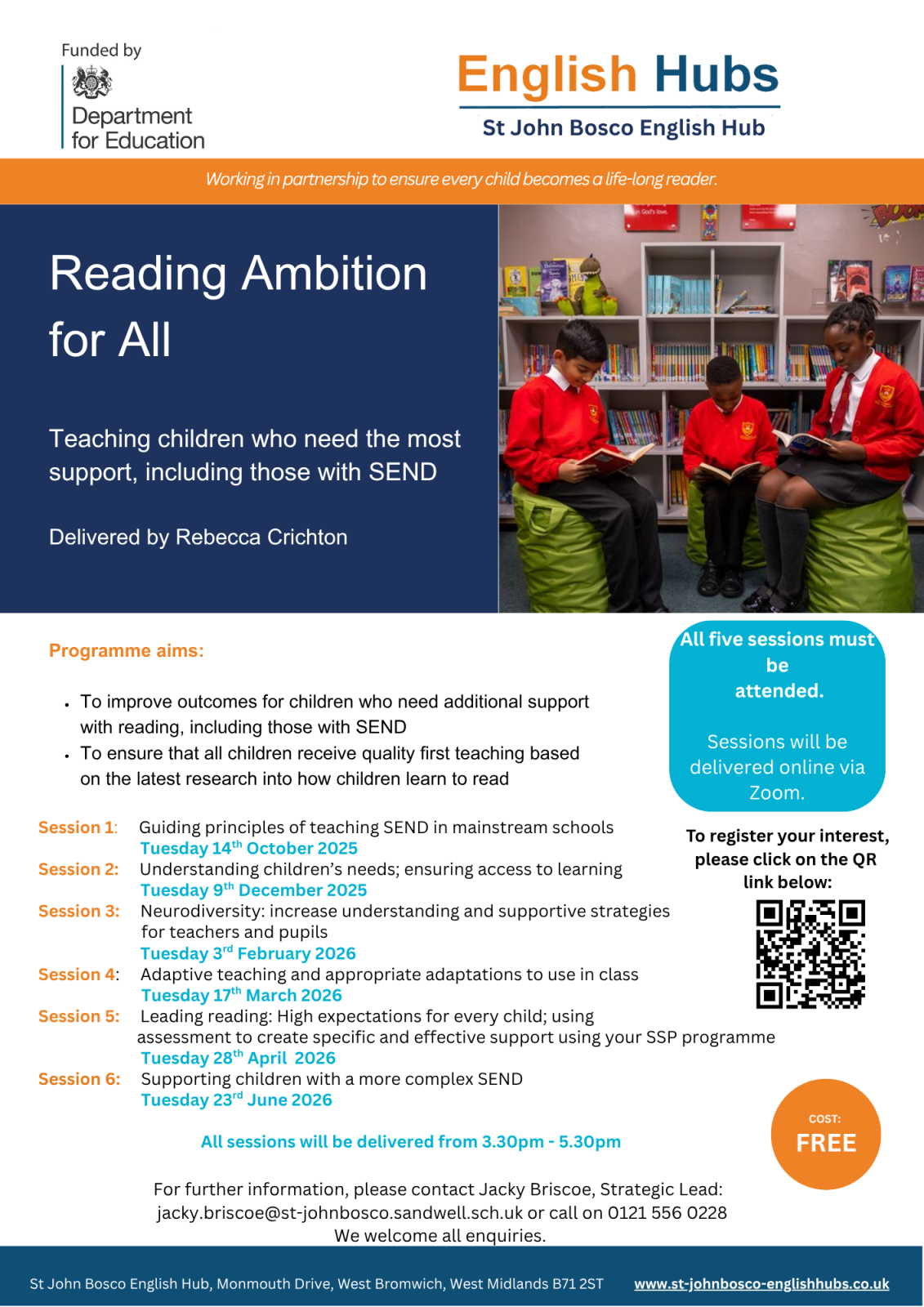 St John Bosco English Hub proudly offers a variety of professional development opportunities through a range of training courses, webinars and face-to-face workshops.
